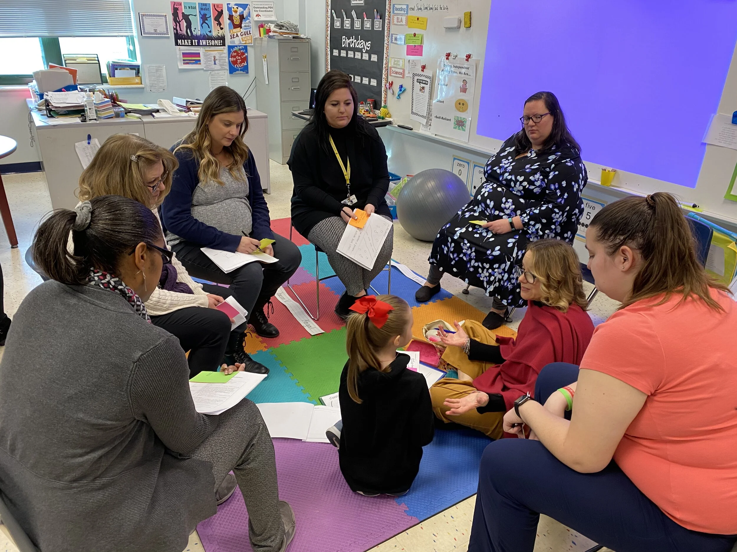 Grade level teams (or cross grade level) study the work in the actual classroom setting. They may meet briefly prior to the classroom and then immediately after to reflect on the work modeled or practiced, and then to consider implications to their own practice as they move forward. Often these visits work well if done in a cycle of 3 days or more so that the consultant can gradually release the work to the teachers.
